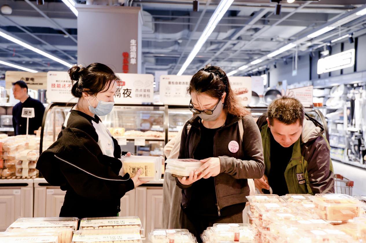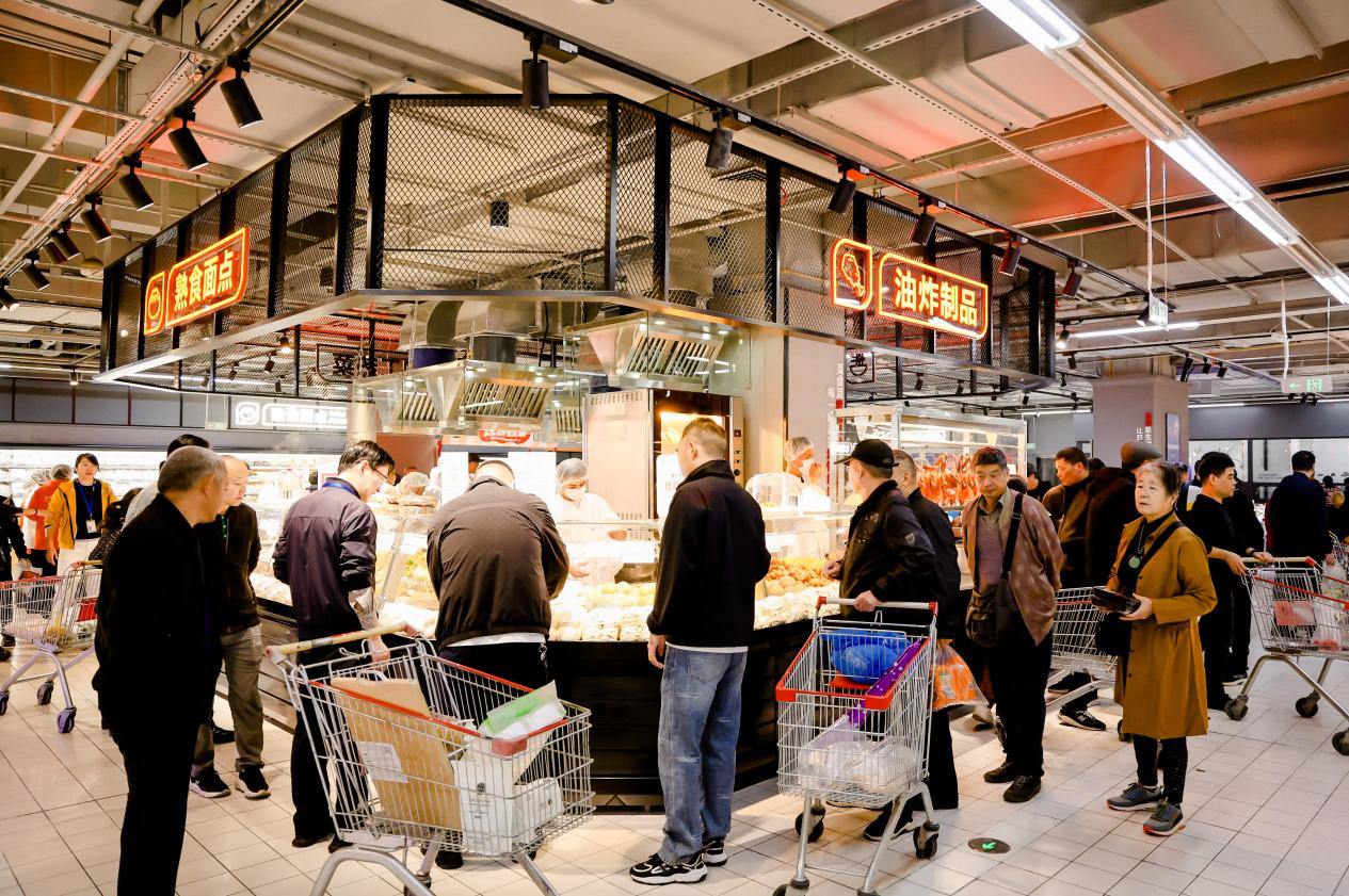 一踏入卖场,暖食香气扑面而来,烟火气十足。面对杭州近日的“断崖式降温”,临平1号店在商品方面围绕家庭一日三餐的基础需求,重点强调“暖身暖胃”的秋冬场景,全店新引入70%的商品,商品结构接近胖东来商品结构的80%,尤其在熟食和烘焙等品类上大幅扩容。现场可以看到多个明厨档口,现切酱鸭、鲜肉小笼包、现烤披萨、肉蛋堡和热豆浆等商品持续输出暖意,方便家长接送孩子上学前后快速解决早晚餐。“送孩子上学顺路过来买个热乎的肉蛋堡,我家孩子也总馋这里的核桃满满面包,带一个刚出炉的给他当早点,很方便!”家住附近小区的陈女士表示。