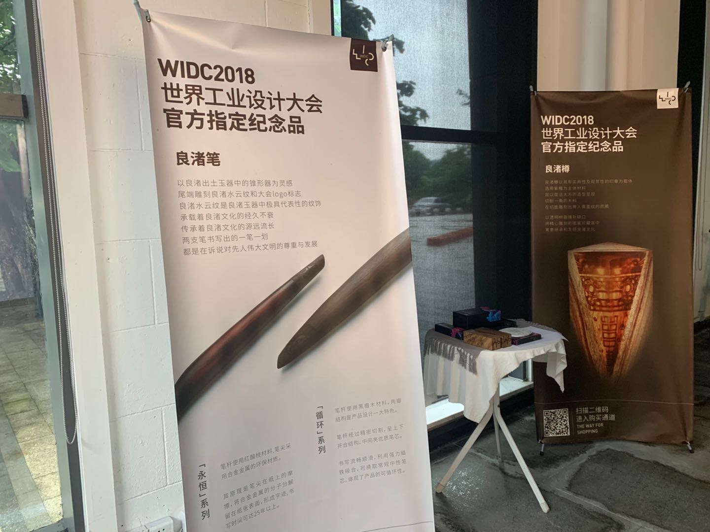 首先是一些知名品牌的产品设计外包系列,最先介绍的九阳豆浆机就是由凸凹出品设计。在转型做产品之后,凸凹将科技感与日常生活紧密结合,设计出一系列独特的实用性产品,如可以无线充手机的加热桌垫、音箱与书包二合一的超酷电音背包等。特别的是,凸凹设计将良渚文化与产品设计进行了深度融合,涉及到良渚文化的产品主要有:与膳佳家居合作出品的良渚系列茶具、印有良渚文化logo的无线充电器、梦回良渚杯(青瓷)、杯壁印有神人兽面纹的双层玻璃杯、良渚笔以及良渚樽等。其中,良渚笔是一大亮点。良渚笔以良渚出土玉器中的锥形器为灵感,尾端雕刻良渚玉器中极具代表性的纹饰——水云纹,“双高”质感与外观设计在保留它实用性的同时使之更具有艺术价值,文化内涵与实用性的交流碰撞让产品焕发出了新的生机。良渚樽则以具有实用性及观赏性的印章为载体,切面雕刻神人兽面纹的图腾,寓意继承和发扬良渚文化。2018年,良渚笔和良渚樽成为世界工业设计大会官方指定纪念品。